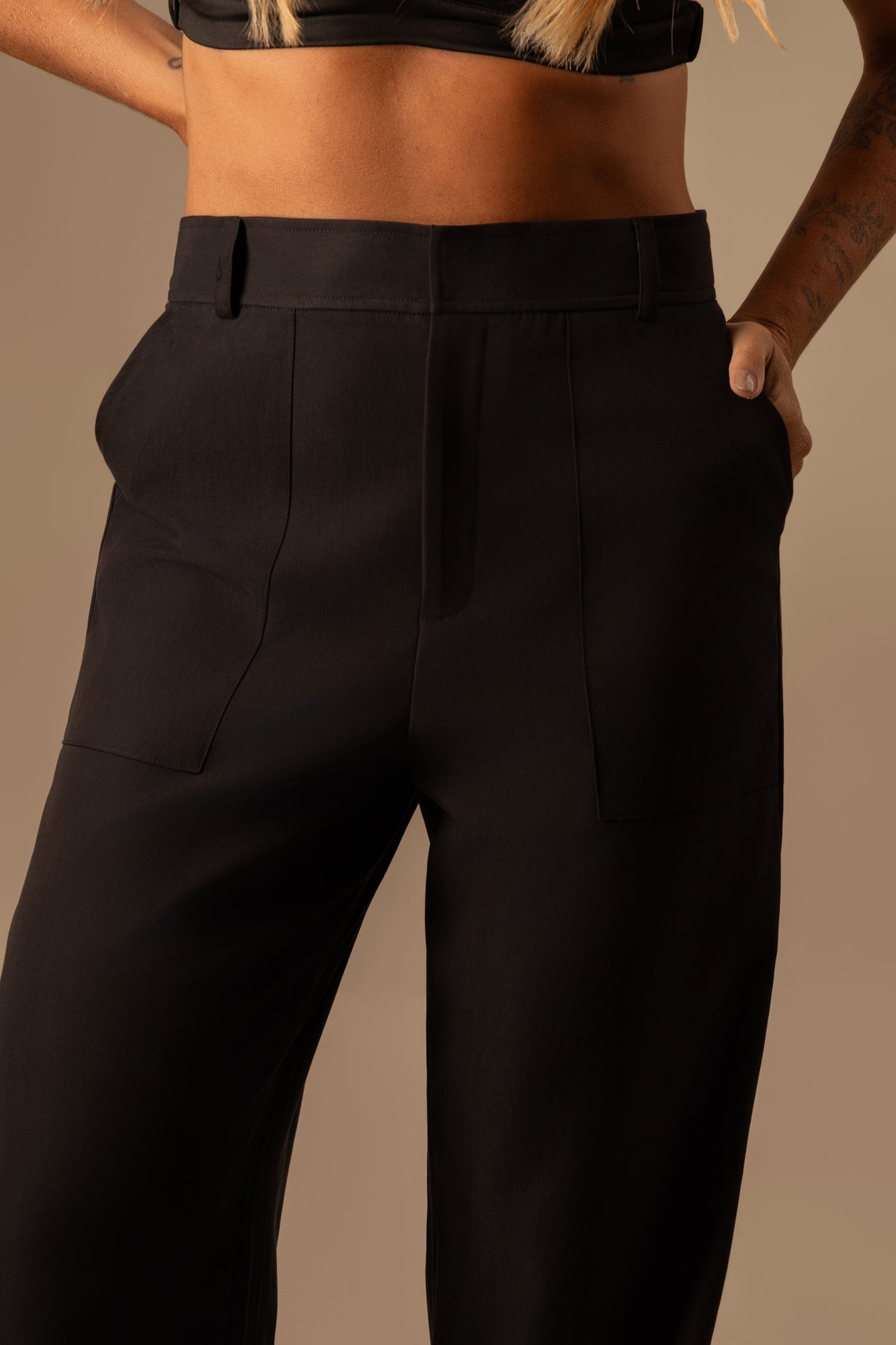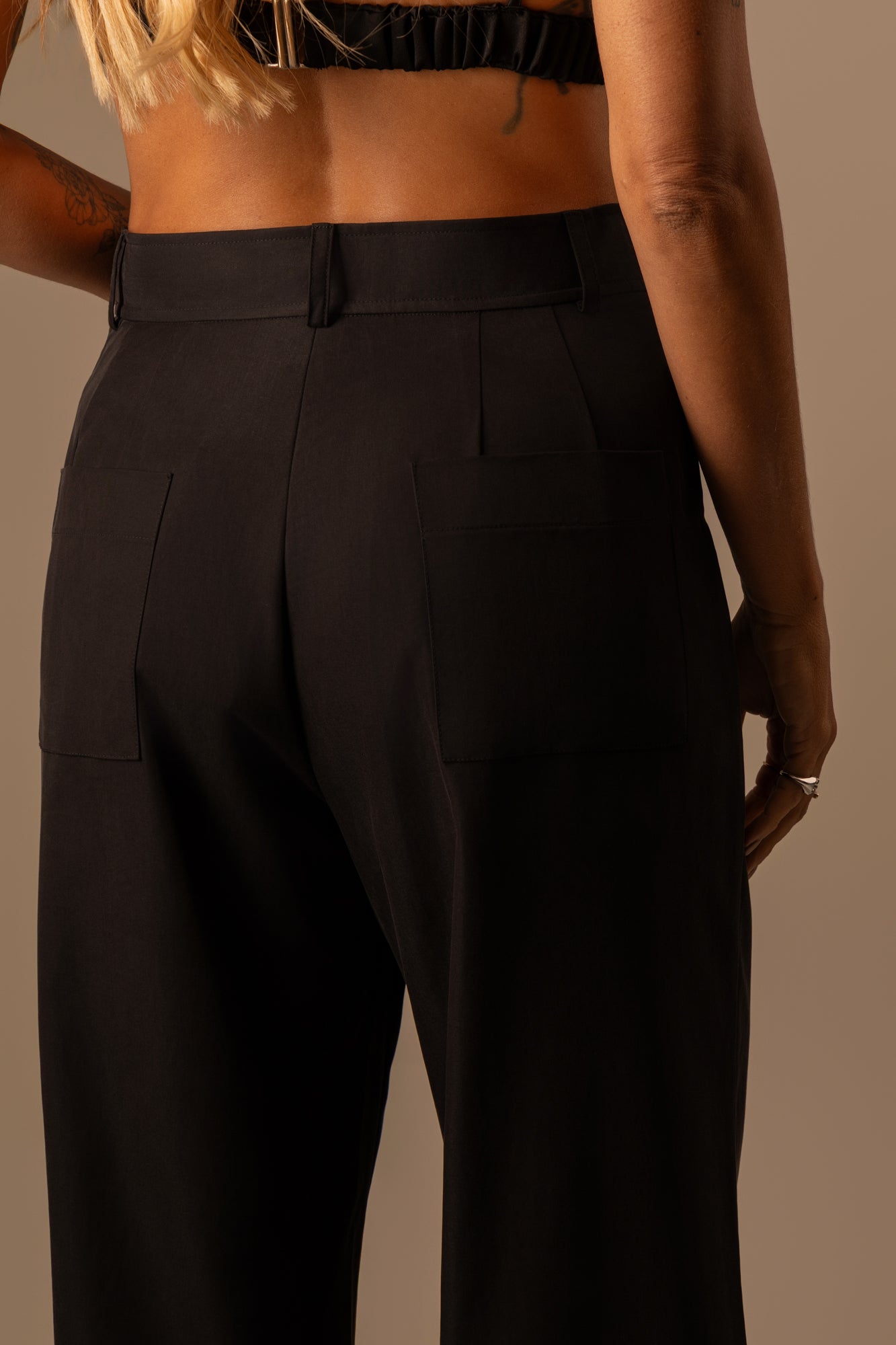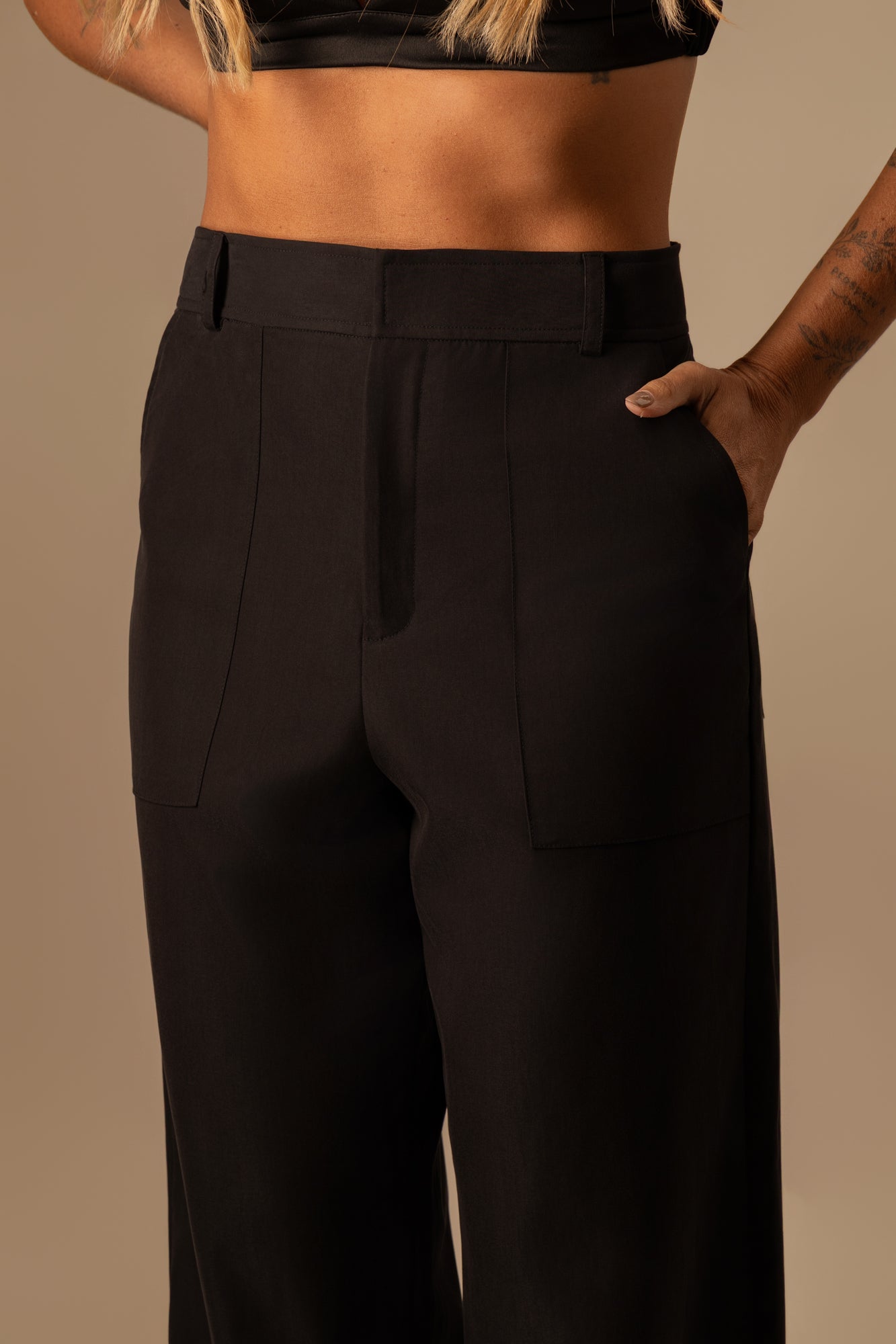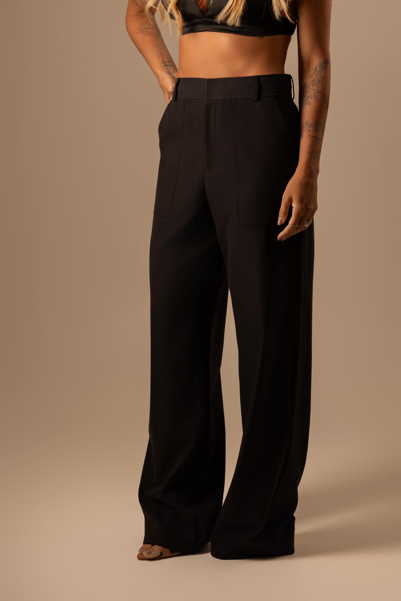 Calça reta de alfaiataria preta com modelagem clássica e caimento impecável. Confeccionada em tecido de alta qualidade, oferece conforto e sofisticação para o dia a dia. Versátil e atemporal, é ideal para compor produções elegantes ou contemporâneas, do trabalho a ocasiões casuais refinadas.