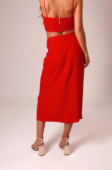 SAIA MIDI VERMELHA COM FENDA LATERAL