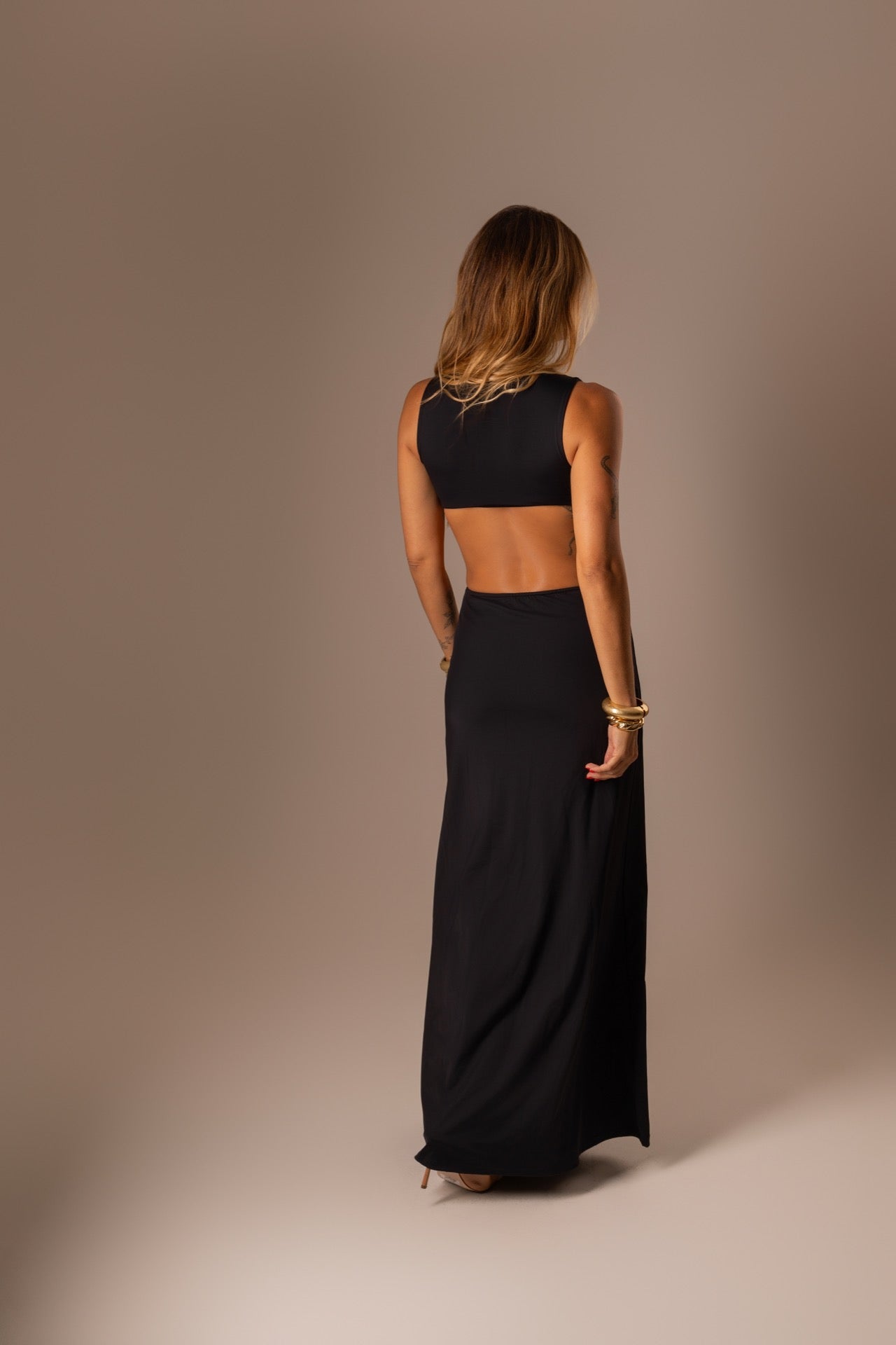 VESTIDO LONGO PRETO COM RECORTE